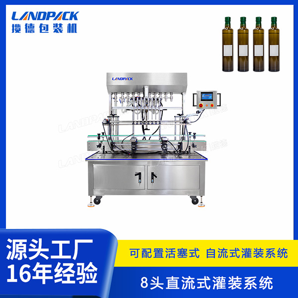 自动食用油灌装生产线主要用于流动性好的液体,其黏度范围在1-100cp内,可用于食品、医药等行业,如食用油,口服液,红酒等等。该生产线使用的封口机为扎盖机,瓶子与盖子一对一现配螺纹,使封口效果更好,密封性更强;人工套胶帽后配收缩机,使胶帽贴实光滑,美观无皱;最后进行贴标。该机具有适用广泛、自动化程度高、灌装精度高、生产效率高、操作简单、使用寿命长等特点。