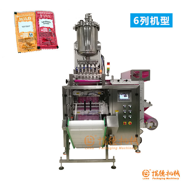 本多列四边封液体包装机选用高精总体辗压式热封辊做为封合磨具,四角密封,多列袋方式,包裝更快、袋形整平、精美美观大方,并选用的PLC加光学自动控制系统,可全自动进行计量检定,制袋,添充,封合,断开,复印出厂日期,切易撕口等工艺流程。本液体包装机可用以食品类,化工厂,日用化工等制造行业的流食液体膏状的包裝。如:洗发液,棒棒冰、植物油,液體饮品、水果汁,苹果酱,无盐黄油等。