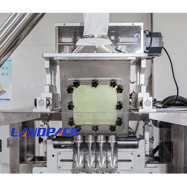 绿茶粉包装机是一款针对粉末、粉剂类型的物料进行包装的多列包装机,该机由螺杆上料机、4列包装机组成,它的工作流程是:把物料倒入储料斗当中,通过螺杆上料机把粉末物料输送到螺杆计量装置当中,进行物料的计量,然后经过下料、充填、封口、切断、成品输出等环节完成包装过程。