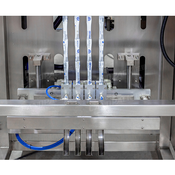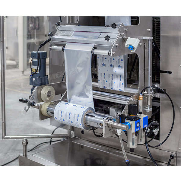 条包粉末包装机是一款针对粉末、粉剂类型的物料进行包装的多列包装机,该机由螺杆上料机、4列包装机组成,它的工作流程是:把物料倒入储料斗当中,通过螺杆上料机把粉末物料输送到螺杆计量装置当中,进行物料的计量,然后经过下料、充填、封口、切断、成品输出等环节完成包装过程。