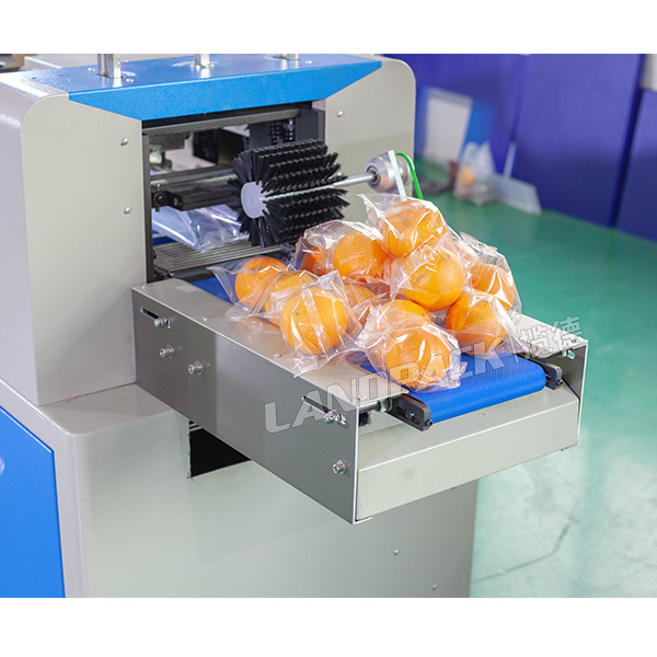 水果包装机是一款由锥形水果上料盘连接枕包装机组合而成的全自动水果包装机械。工作人员只要将橙子或者桔子倒入水果上料盘,启动机器以后,水果上料盘的锥形滚筒将物料一个一个输送到包装机当中,进行包装封口,成品输出。跟其它柑桔包装机不同的地方在于,我们这款机器单独配置了一台锥形滚筒上料装置,实现了柑桔、橘子、脐橙等水果的全自动包装。包装的过程得到更有效地配合,解放了劳动力,避免了二次污染,以高效的方式提高工业化的生产率。