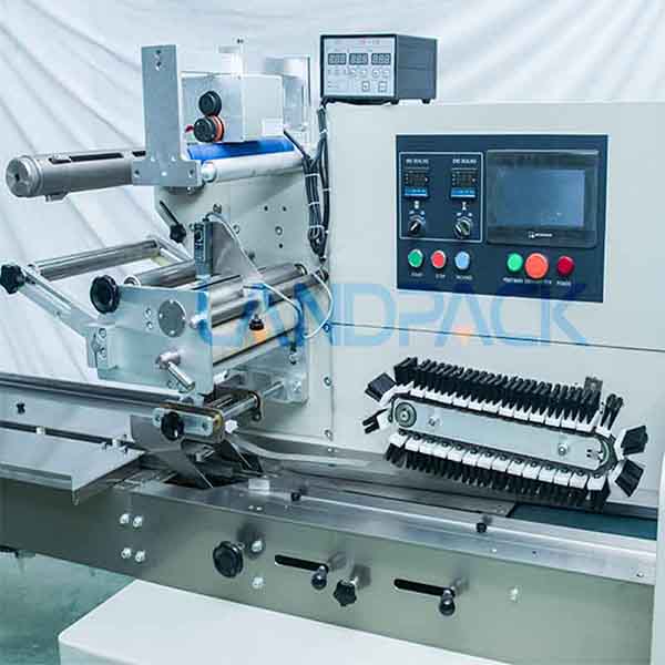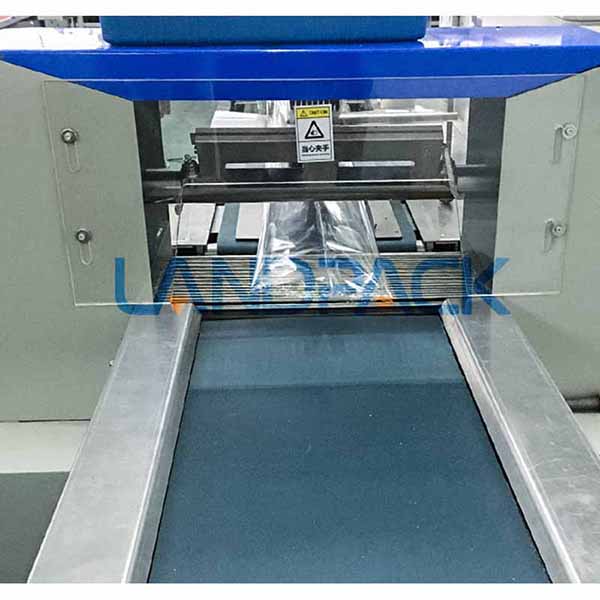 是一款针对百洁布、洗碗布、清洁布而设计的包装机械设备,该机采用大尺寸电子触摸屏控制包装进程,可以准确便捷操作包装速度、包装温度等相关参数。该机的工作流程是:操作人员手动将需要包装的百洁布、洗碗布或者清洁布放到包装机的传送带当中,然后传送带自动把物料输送到包装机里面,自动完成卷膜制袋、打码、封口、切断、成品输出的环节完成包装过程。