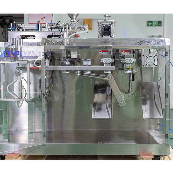 该款水平式给袋包装机适用于酱油、米醋、果汁、饮料、番茄酱、辣椒酱、豆瓣酱、洗发水、护发膏、面膜膏、粘稠度比较高的膏体等物料进行包装,袋子类型是异形袋来的。