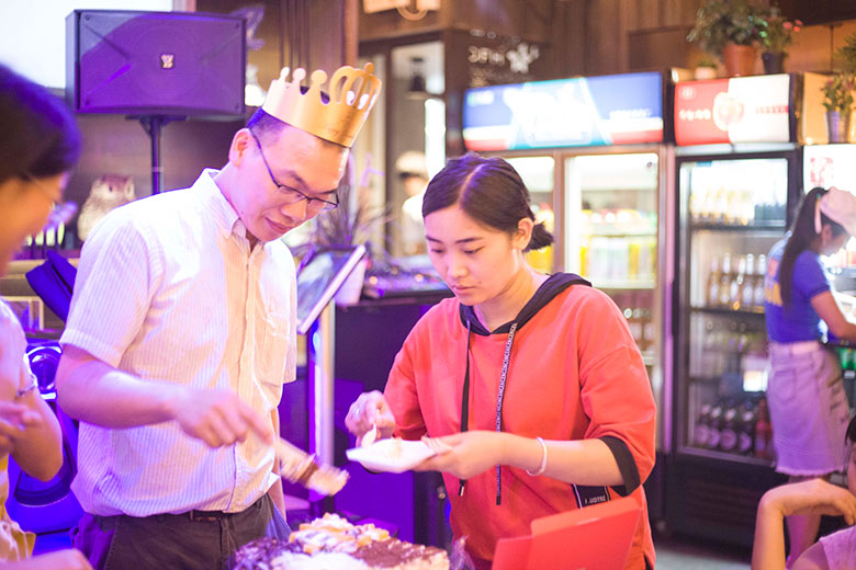 得知有同事生日,组织人还特意准备好了蛋糕,为寿星庆祝生日,大家一起为寿星们唱了生日快乐歌,并合影留念。